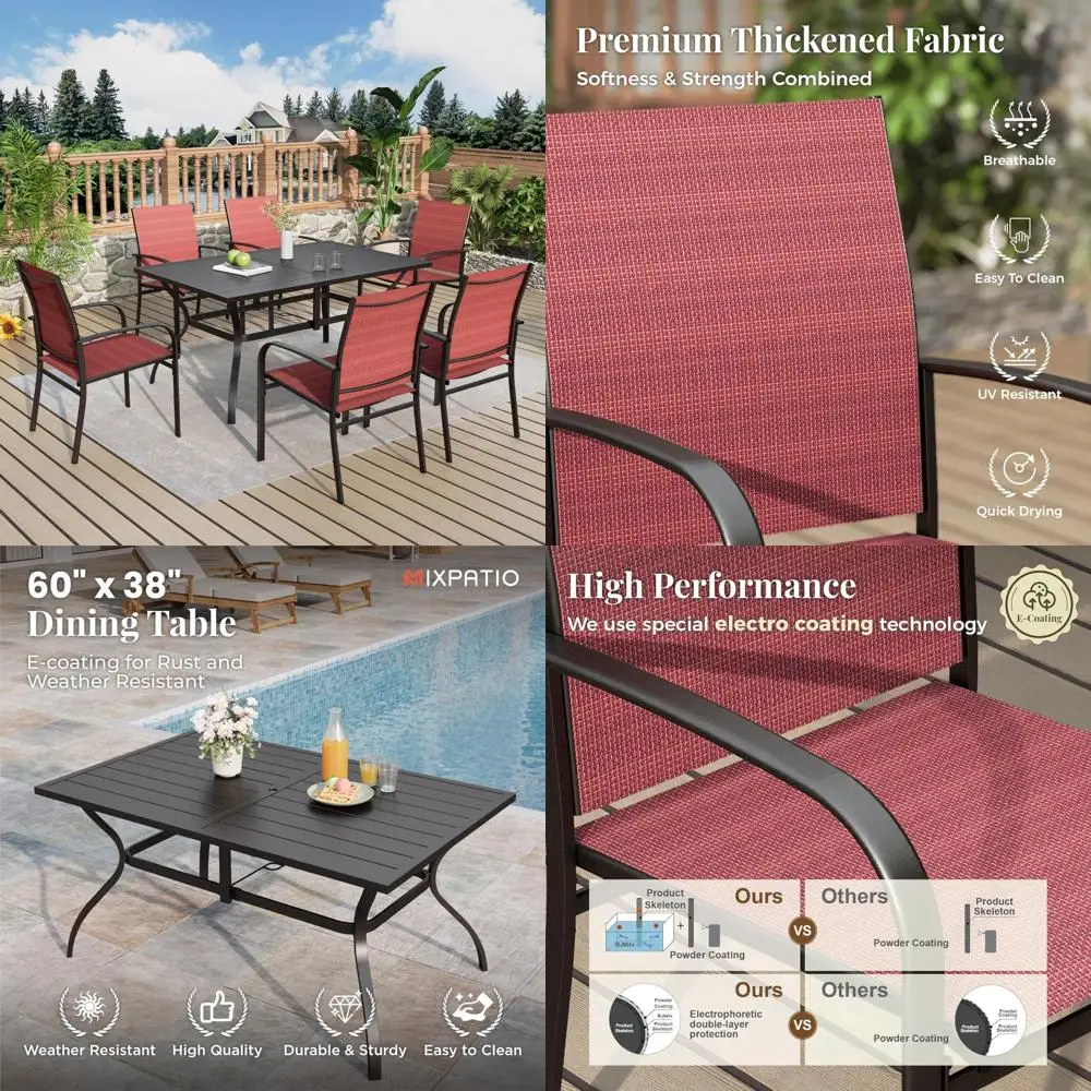 7-Piece All-Weather Cast Aluminum Dining Set with 6 Swivel Chairs and Rectangular Table, Black Frame, Outdoor Furniture $2,129.99