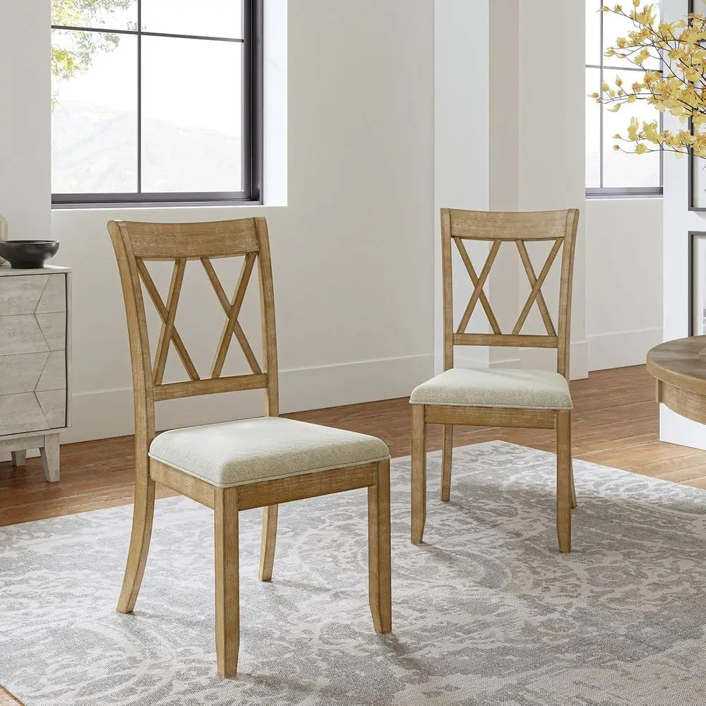 Pair of Rustic Solid Wood Double Crossback Dining Chairs with Upholstered Cushions for Kitchen or Dining Area Customized $105.28