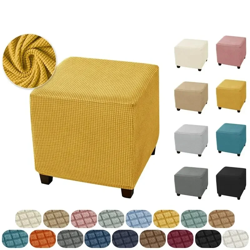 Square Ottoman Cover Polar Fleece Footstool Covers Elastic Footrest Slipcovers House Pouf Carre Furniture Protector Stool Covers $7.85