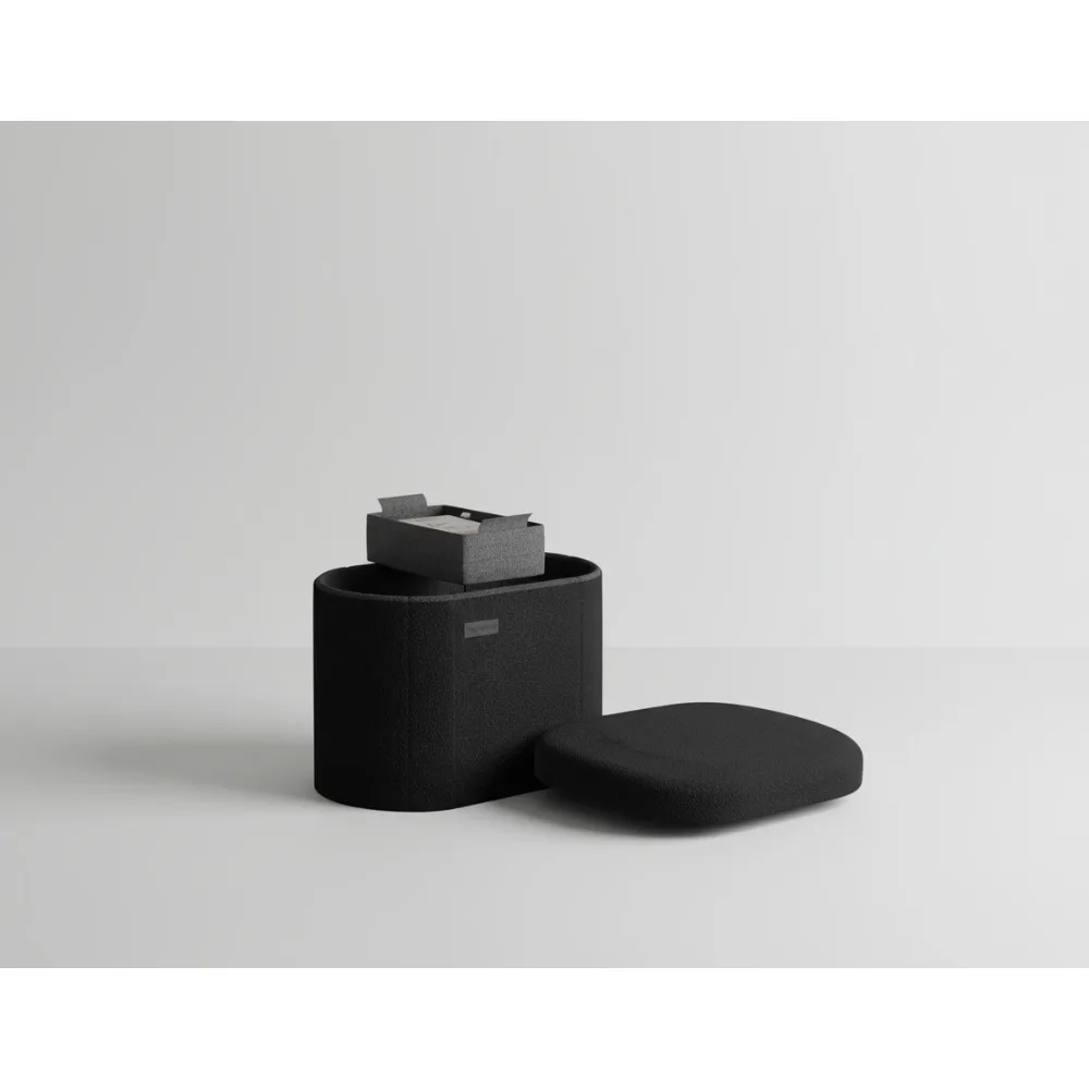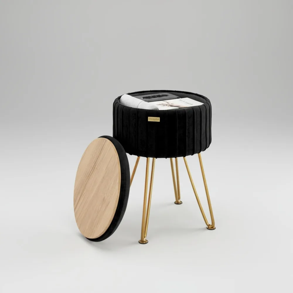 Round Velvet Storage Ottoman with Dual-Sided Lid, Modern Foot Stool for Living Room Bedroom Vanity, Black $56.29