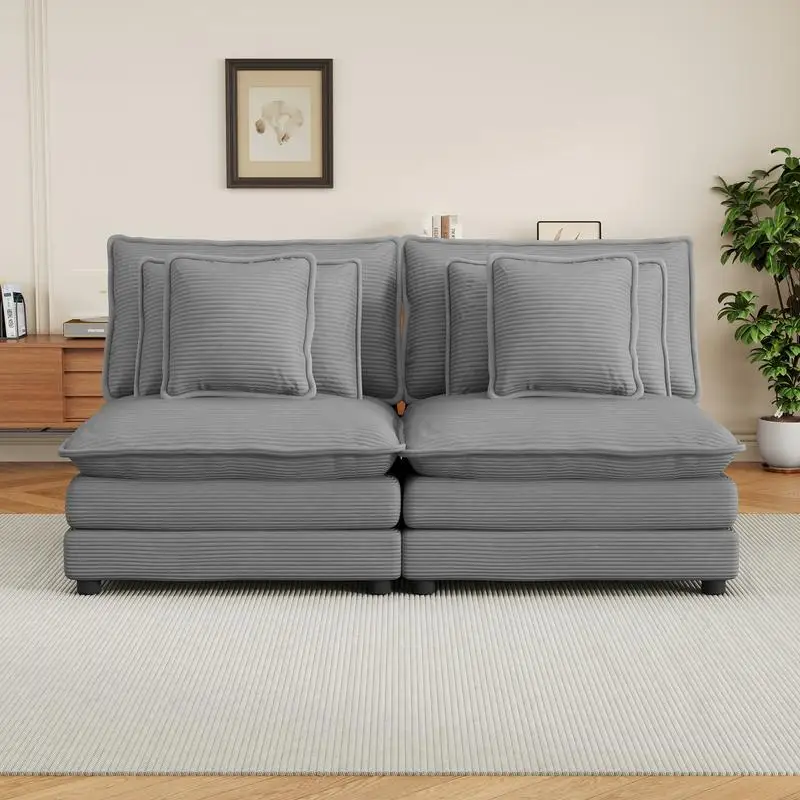 Modern Modular Sofa Couch Corduroy Upholstered 70.8" with 4 Pillows for Living Room - Dark Grey $363.19