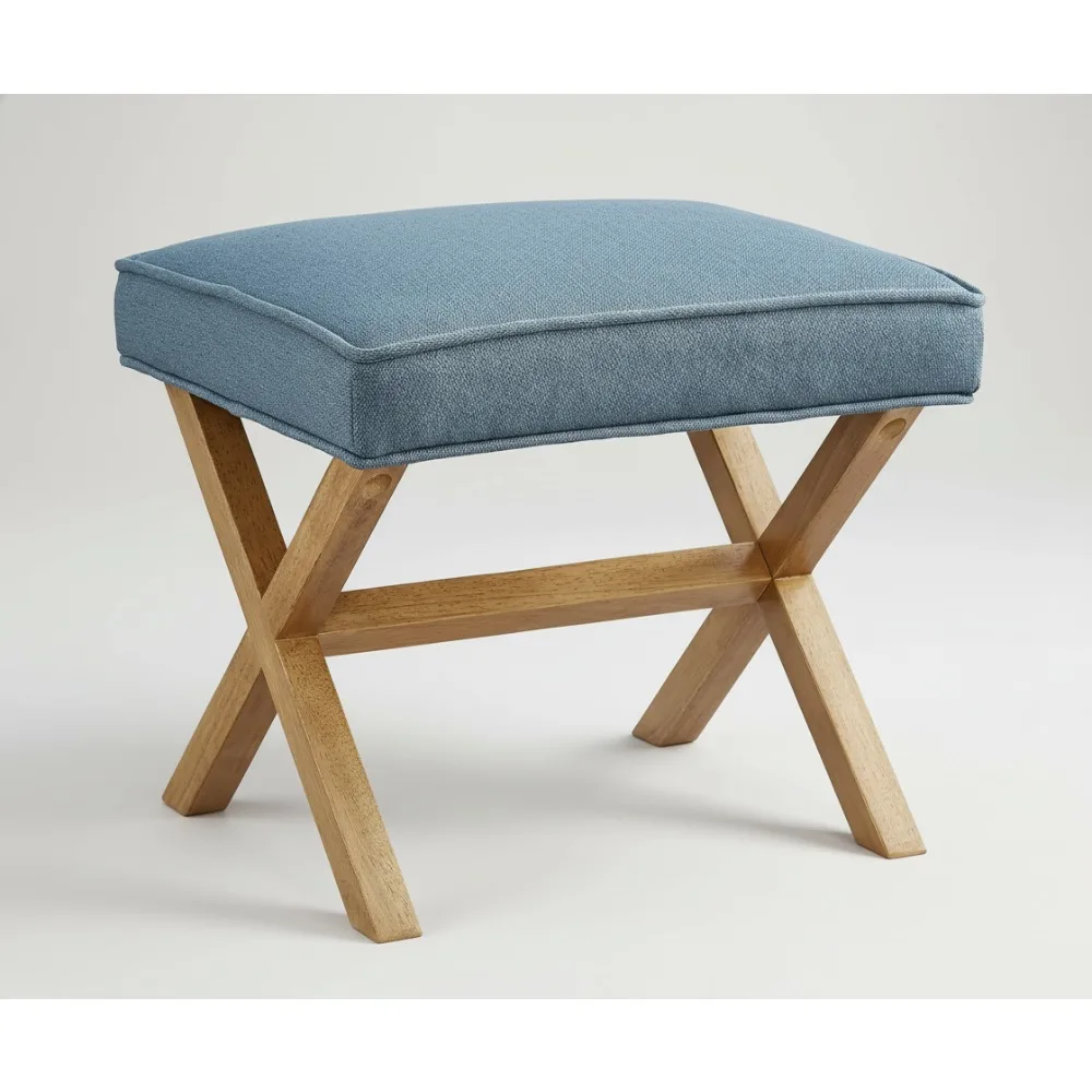 Modern X-Frame Ottoman Foot Stool, 20x18x18 Inch, Blue Polyester Fabric, 300lb Capacity for Living Room & Office $85.68