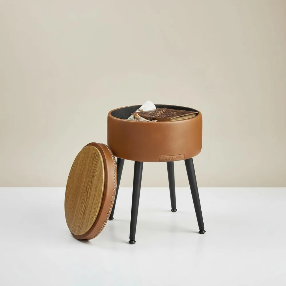 Mid-Century Modern Storage Ottoman, Vanity Chair Stool, Synthetic Leather, 330 lb Capacity, Caramel Brown for Home Decor $48.95
