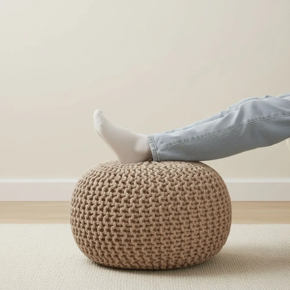 Cozy Cotton Knit Pouf Ottoman Foot Rest - 20" Round Floor Cushion for Living Room, Bedroom & Nursery $81.60