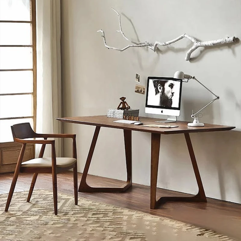 muebles para hogar Nordic Black Walnut Cherry Study Table Home Study Simple Computer Light Luxury Curved Desk $889.50