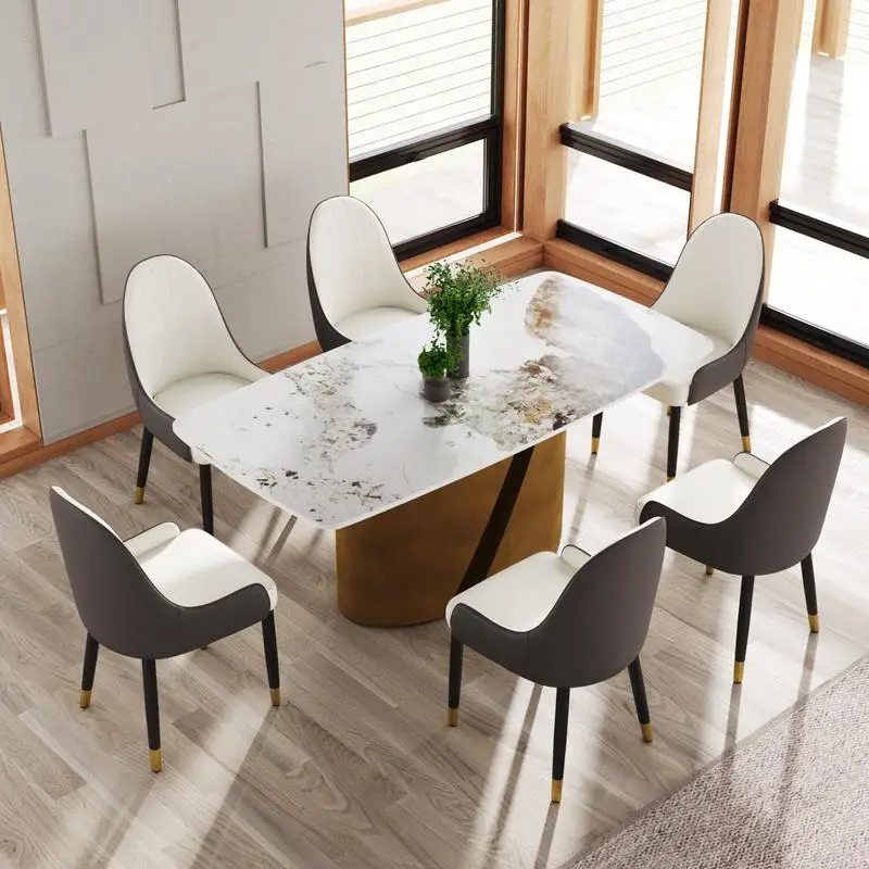 70.86 Modern Curved White Panel Dining Table with Bronze Iron Legs - Seats 6 to 8 with 6 Chairs $2,671.25
