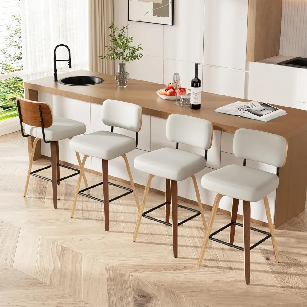 Swivel Bar Stools Set of 4, 26" Upholstered Faux Leather Counter Height Barstools with Walnut Back & Bentwood Legs $132.14