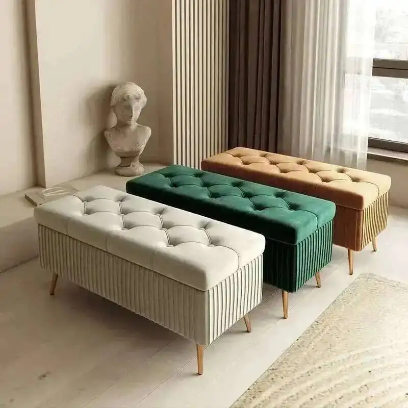 Home Bedroom Entrance Storage Velvet Changing Stools Ottomans Nordic for Bench Living Shoe Room Stools Furniture Bed End Stool $77.61