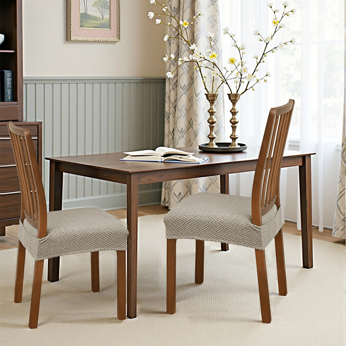 1PC Solid Color Elastic Striped Plaid Double Elastic Chair Seat Cover with Tongue Buckle, Suitable for Chair Cover Decoration $7.02