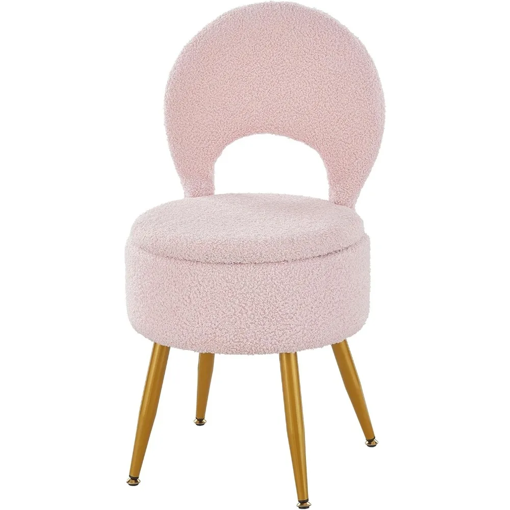 Velvet Vanity Stool with Storage, Folding Backrest & Footrest, Round Ottoman for Bedroom Living Room Makeup $61.60
