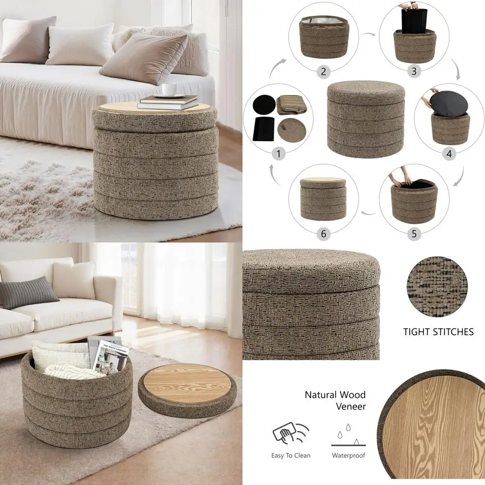 Round Storage Ottoman 19.75" - Faux Leather Foot Stool with Removable Lid for Living Room, Office, Home Decor $85.51