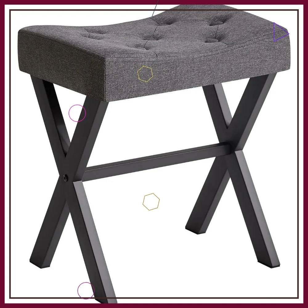 U-Shaped Linen Vanity Stool, Square Makeup Chair with X-Leg, Ottoman Footrest for Bedroom Living Room in Dark Gray $47.91