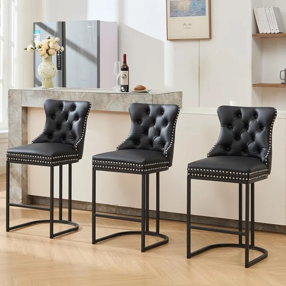 Counter Height Bar Stools Set of 3, 26" Modern Barstools with Back, Faux Leather Upholstery Counter Chairs,Customized $149.94