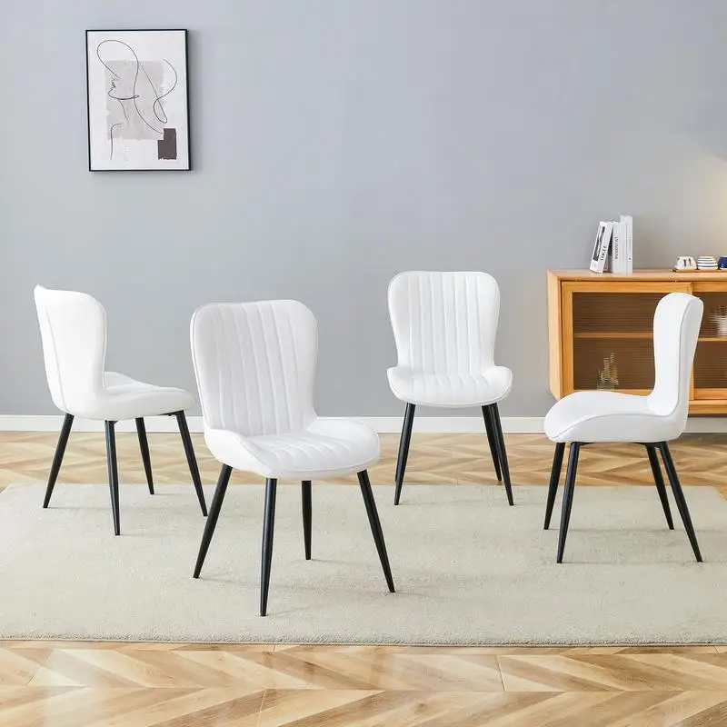 Set of 4 White Minimalist Ergonomic Dining Chairs with Curved Seat Cushions for Comfortable Sitting Posture $303.36