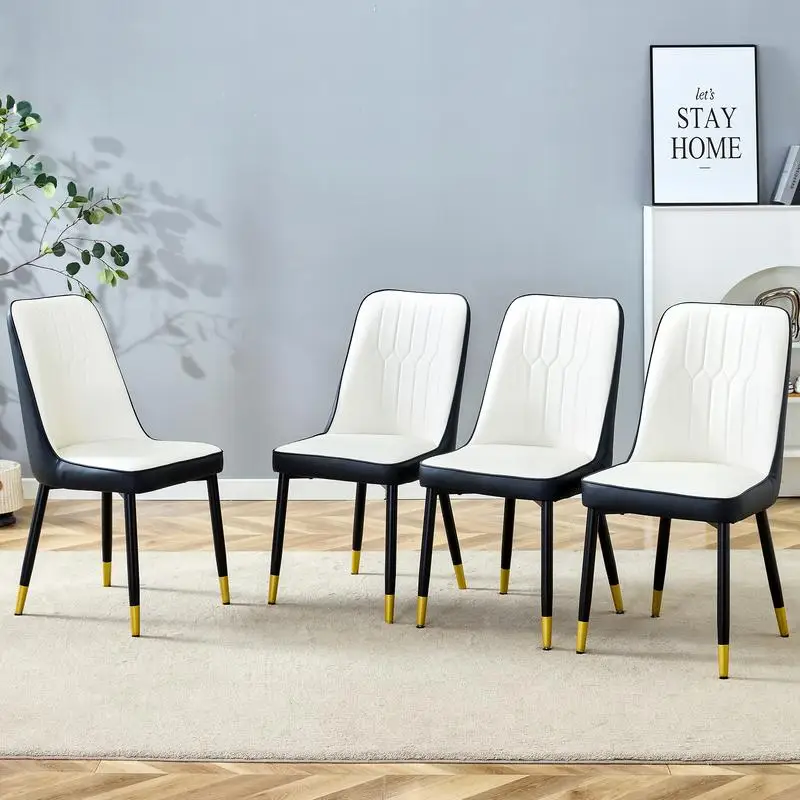 Modern Two-Tone PU Dining Chairs - White & Black Splice with Gold Legs, Set of 4 - Stylish & Comfortable, Perfect for Home $513.35