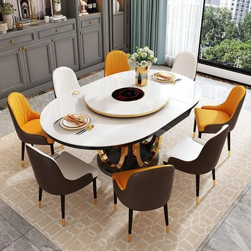 Combination Of Dining Table And 6 Chairs With Turntable Stainless Steel Frame Round Table Kitchen Furniture For Large Apartment $911.90