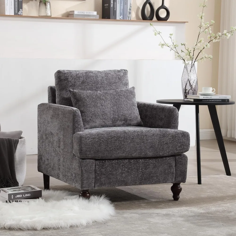 Chenille Accent Armchair Oversized Comfy Upholstered Lounge Cozy Modern Corner Single Reading Chair with Detachable Pillows Cove $155.55