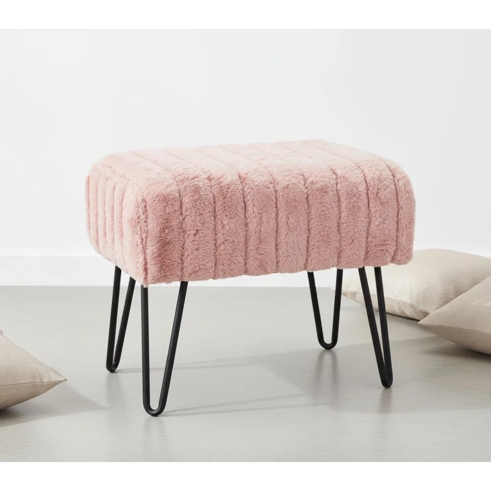 Super Soft Pink Faux Fur Ottoman Bench 19x13x17 Inch Living Room Foot Rest Stool Bedroom Decor Chair $68.00