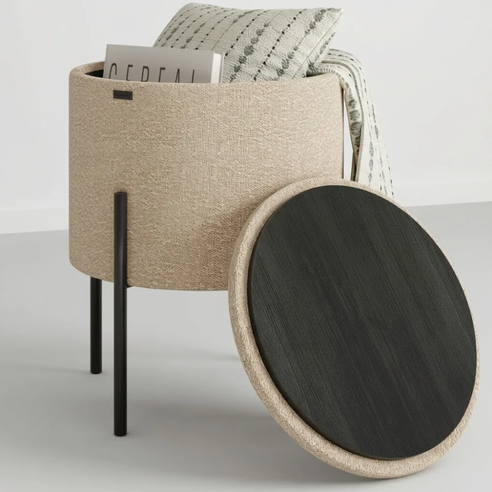 Round Storage Ottoman with Boucle Upholstery, Dual-Sided Lid, Modern Foot Stool for Living Room Bedroom Dorm, Beige $79.10