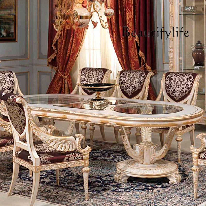 Luxury European Dining Room Furniture, Solid Wood Carving Flower Oval Long High-end Dining Table And Chairs X $3,017.96
