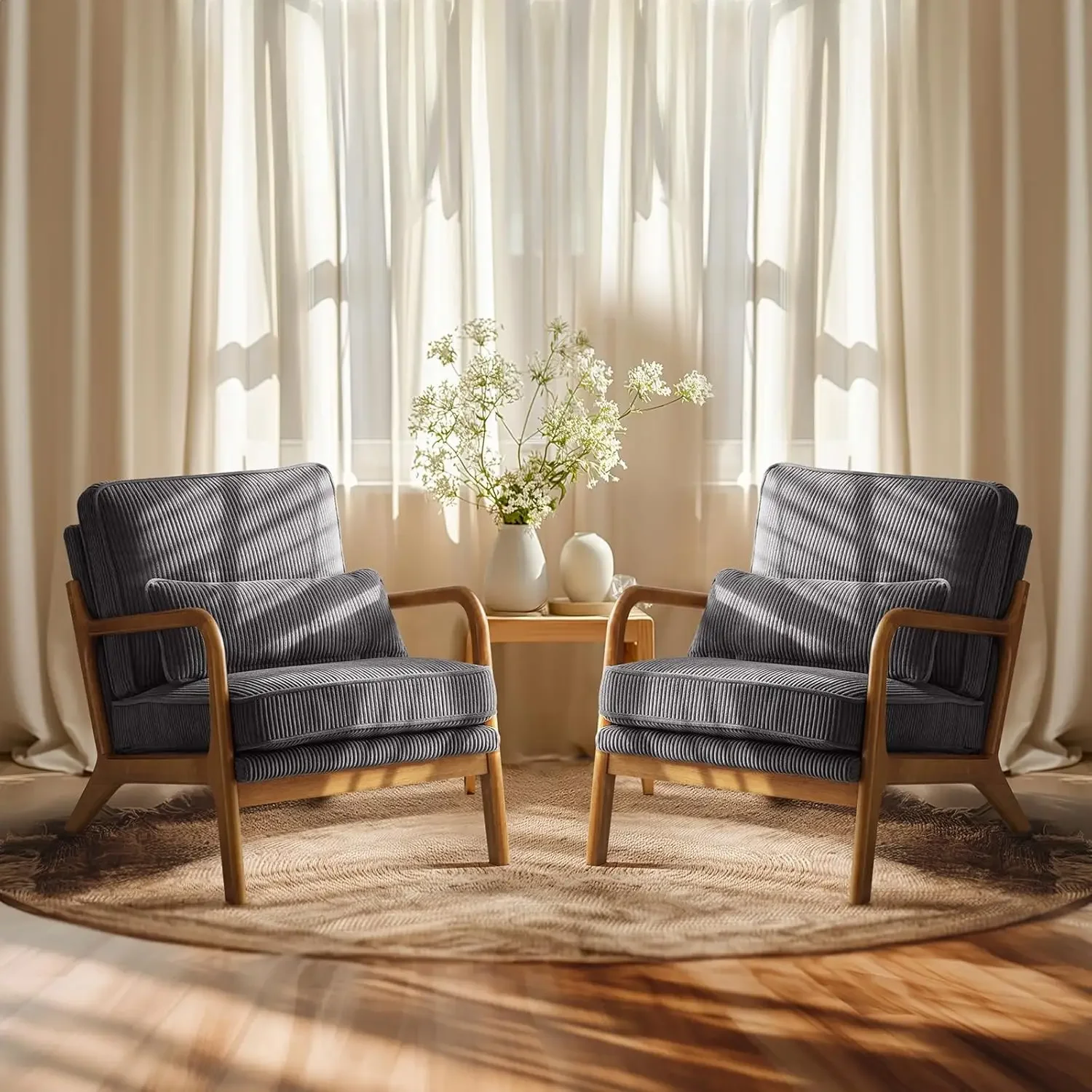 Nordic Accent Chairs Set of 2 Upgraded Premium Corduroy ,Upholstered Arm ,Solid Wood Comfy Reading Chair with Lumbar Pillow, Mid $253.58