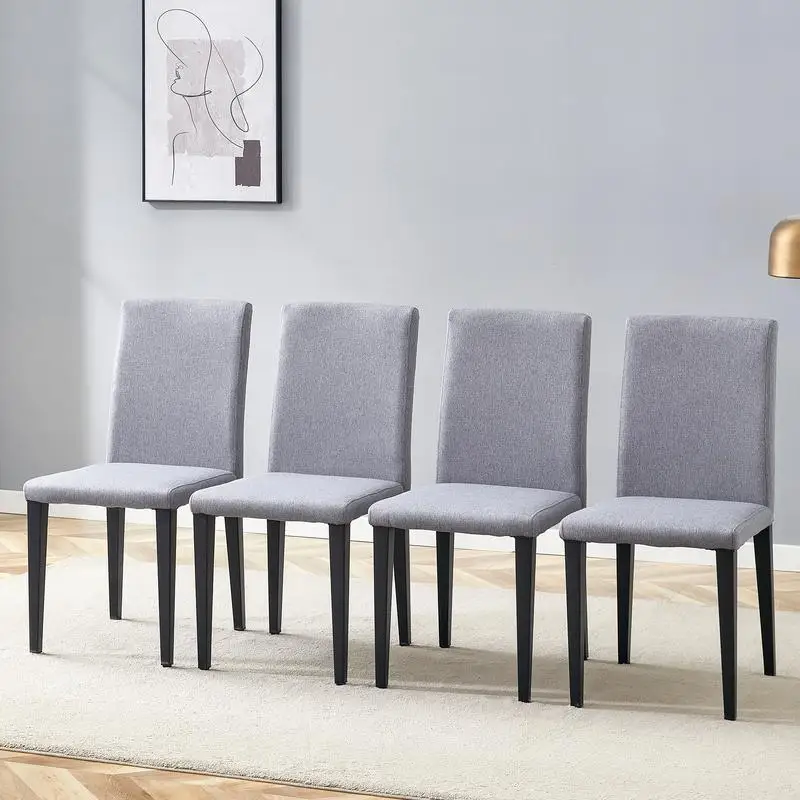 Set of 4 Light Gray Linen-Cotton Dining Chairs - Simple, Versatile, Comfortable Design for Dining Room Use $307.15