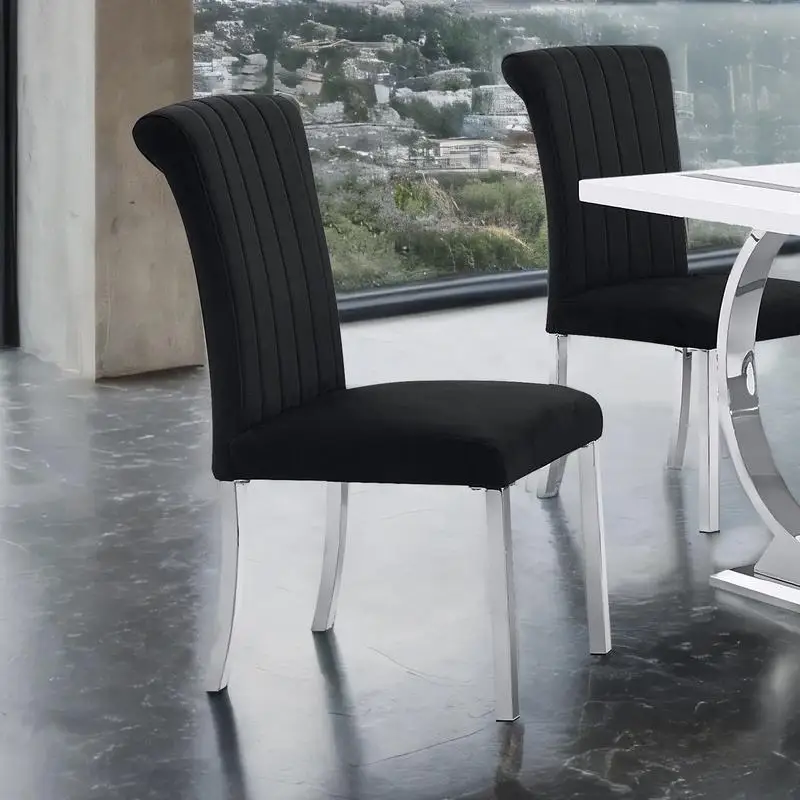 Contemporary Channel Tufted Side Chair with Black and Silver Finish for Dining Room Furniture $526.69