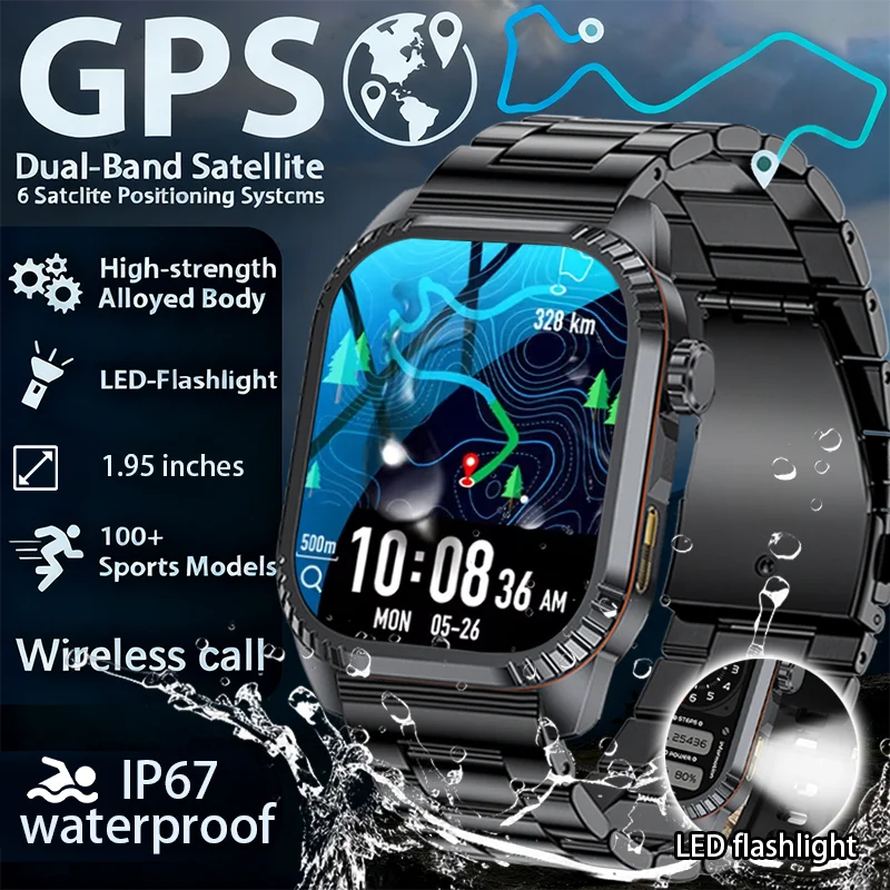 2026 Outdoor Military SmartWatch GPS trackr IP67 Flashlight 1.95" HD Display Screen Bluetooth Call Men Sports Fitness Smartwatch $17.88