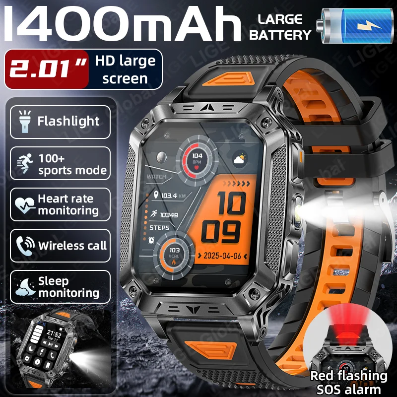 LIGE New Military Smart Watch 1400mAh Battery Fitness Tracking IP68 Waterproof Tactical Sports Flashlight Men's Phone Smartwatch $30.57