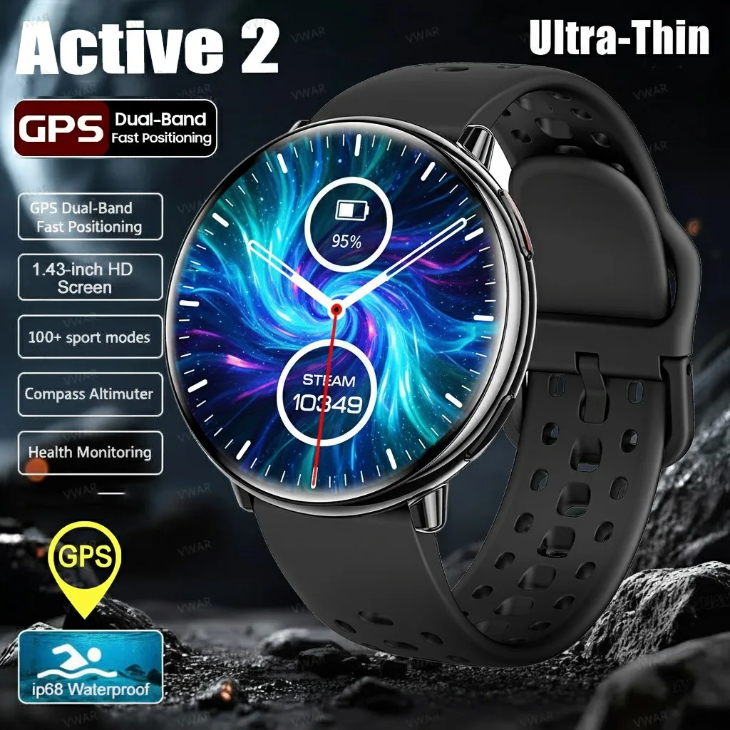 VWAR Active 2 Ultra-Thin GPS Smart Watch BT Call Built-in GPS Compass IP68 Waterproof Smartwatch for Women Men Android IOS $42.54