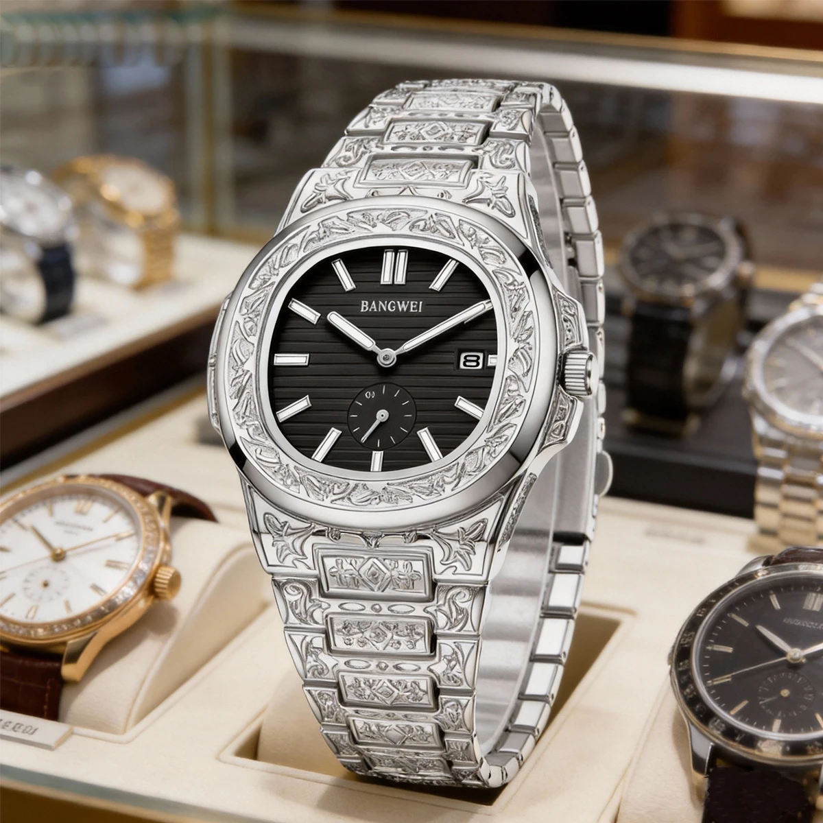 BANGWEI Luxury Fashion Man Clock Top Business Waterproof Luminous Date Week Men's Watches Quartz Stainless Steel Men Wristwatch $18.48