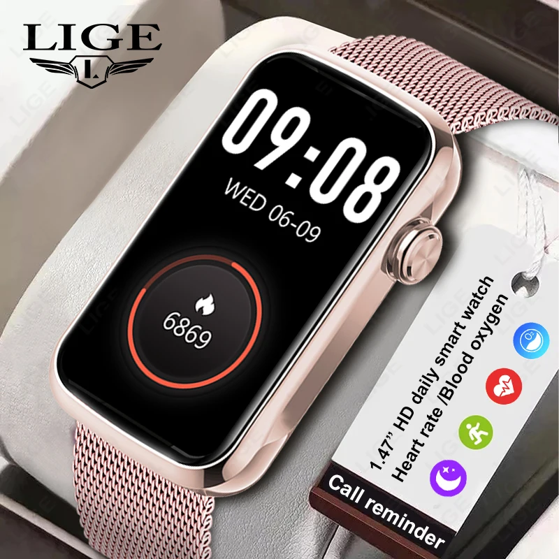 LIGE 1.47'' Smart Watch Women Men Smart Bracelet Heart Rate Step Count Sport Fitness Health Monitor Waterproof Smartwatch Ladies $19.24