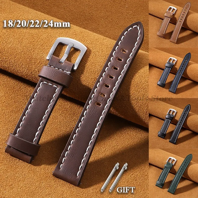 18mm 20mm 22mm 24mm Retro Leather Watchband for Huawei Watch GT 4 46mm for Omega Quick Release Dark Brown Men Universal Bracelet $3.36