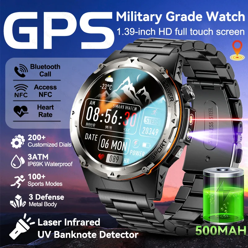 New Military Grade GPS Men Smart Watch 1.39-inch Screen UV Infrared 3ATM Waterproof 500mAh Battery NFC Bluetooth Call Smartwatch $29.60