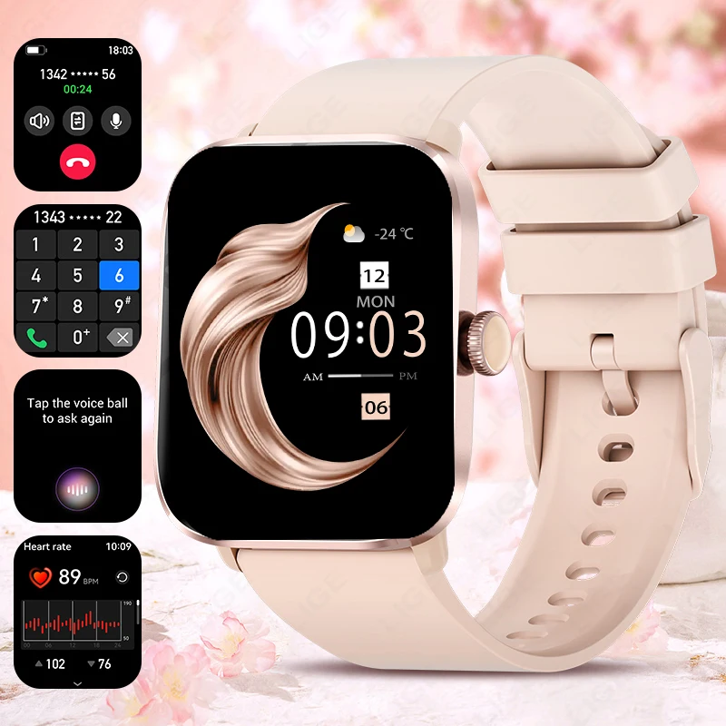 LIGE 1.83-inch Smart Watch for Women Health Heart Rate Sports Lady Watches Waterproof Bluetooth Call Smartwatch For Android IOS $21.17