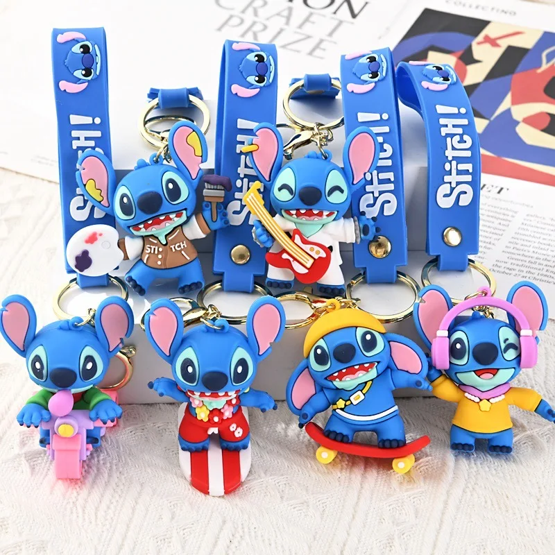 Disney Lilo&stitch Stitch Q Version Cute Street Series Pvc Keychain Figure Car Key Decoration Christmas and Halloween Small Gift $0.73