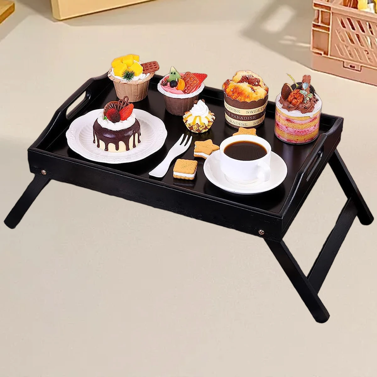 Foldable Bamboo Breakfast Tray with Handles - Ideal for Bed, Sofa or TV - Laptop, Snack and Meal Tray (Black/White) $24.30