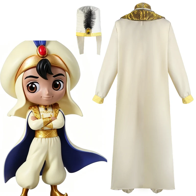 Adult Aladdin Cosplay Costume Arabian Prince Outfit With Gold Embroidery For Halloween Party Stage Performance $28.90
