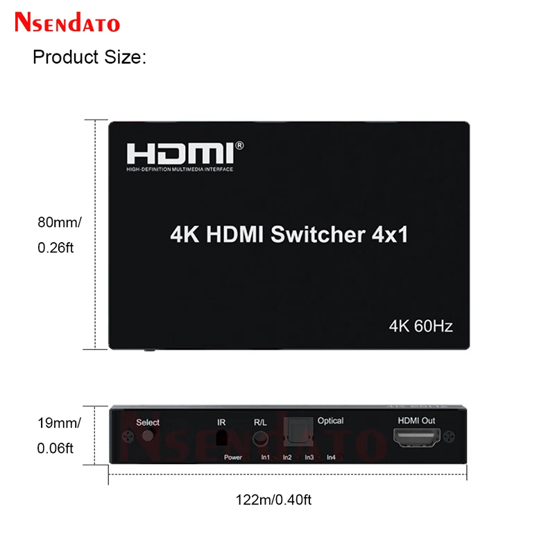 HDMI 2.0 Switcher 4 in 1 out with audio 4K 60Hz HDMI Switch Switcher Selector 4x1 Full 3D Support Dolby HDCP2.2 HDTV Xbox PS3/4 $24.97