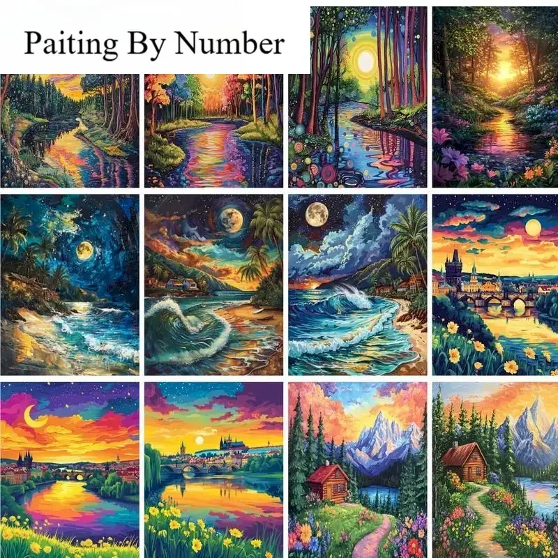Painting By Numbers Landscape Paint Canvas Picture Oil Painting By Number Coloring HandPainted For Adults Home Decor $7.91