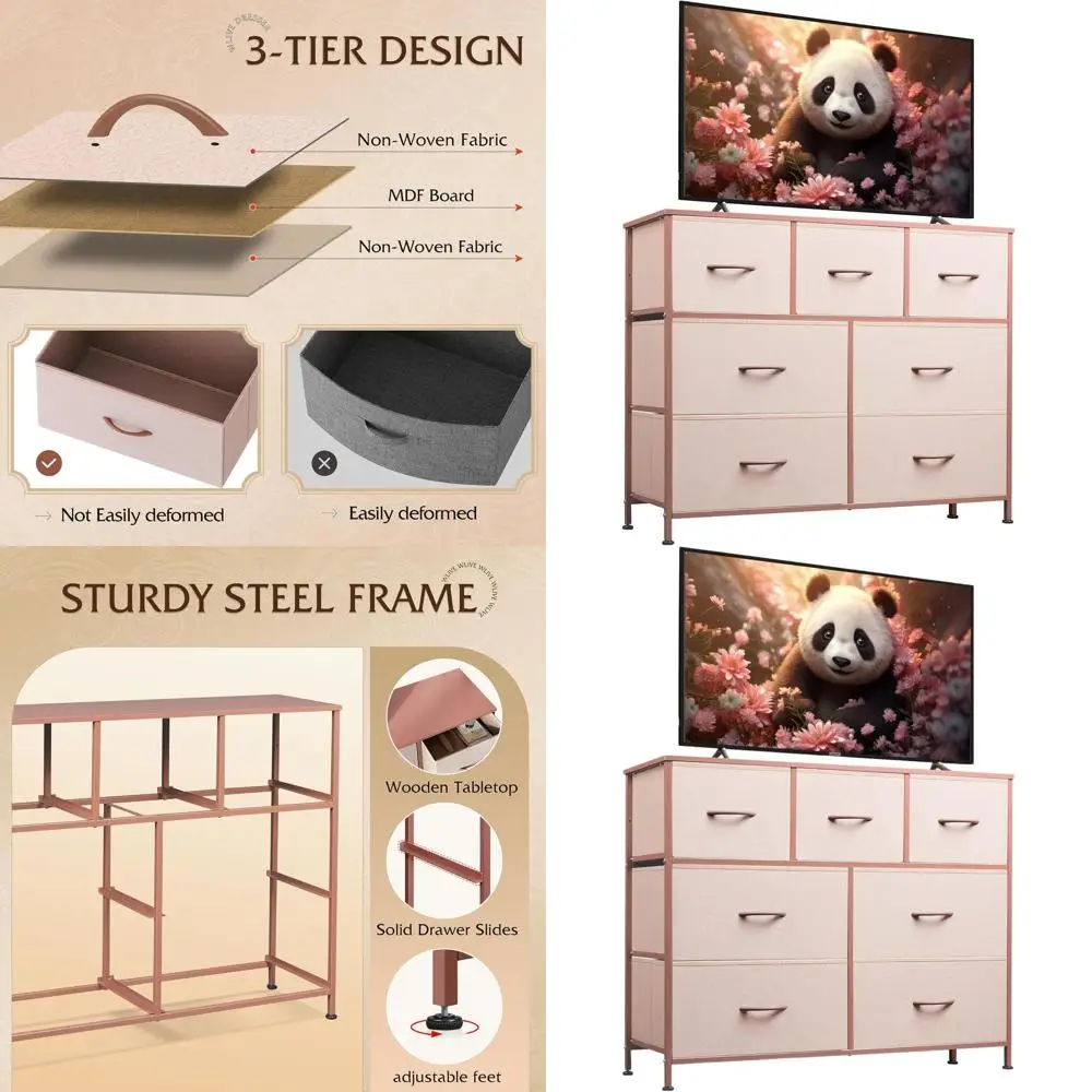 7 Der Drer TV Stand, Drers or Bedroom, abric Storage Tower, Hallway, Entryway, Closets, Sturdy Steel e, Wood Top, Easy Pull Hand $88.89