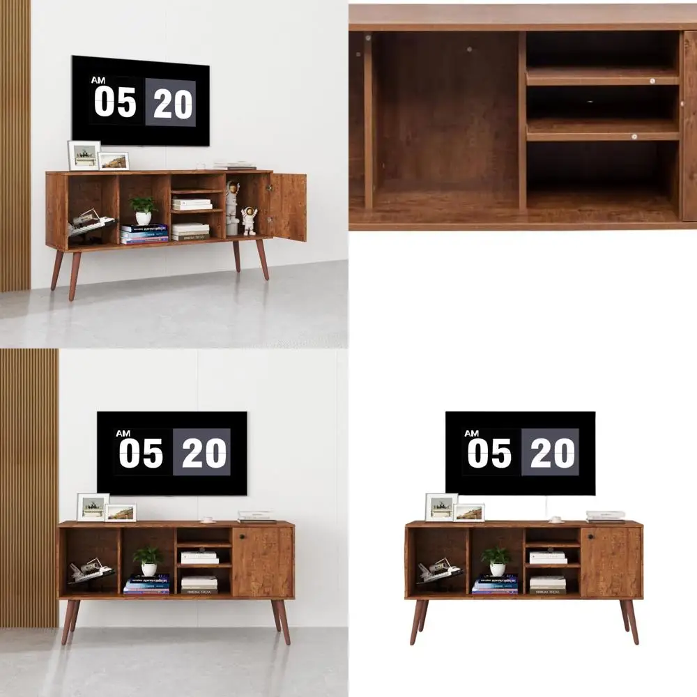 Walnut Brown Rectangular TV Stand with Extendable Feature, Ideal for 50-59 TVs in Living and Bedroom Spaces $200.99