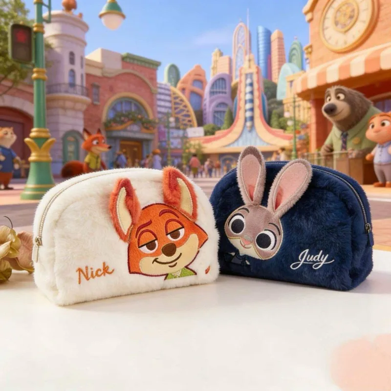 Cartoon Disney Zootopia Judy Nick Cute Plush Makeup Bag for Girl Anime Merchandise Large Capacity Storage Women's Phone Bag Gift $8.32