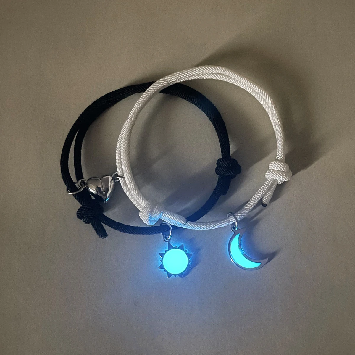 2-Piece Set Luminous Day Moon Couple Bracelets Women's Fashion Gift Jewelry Accessories Shiny Glowing Wristwear for Lovers $3.85