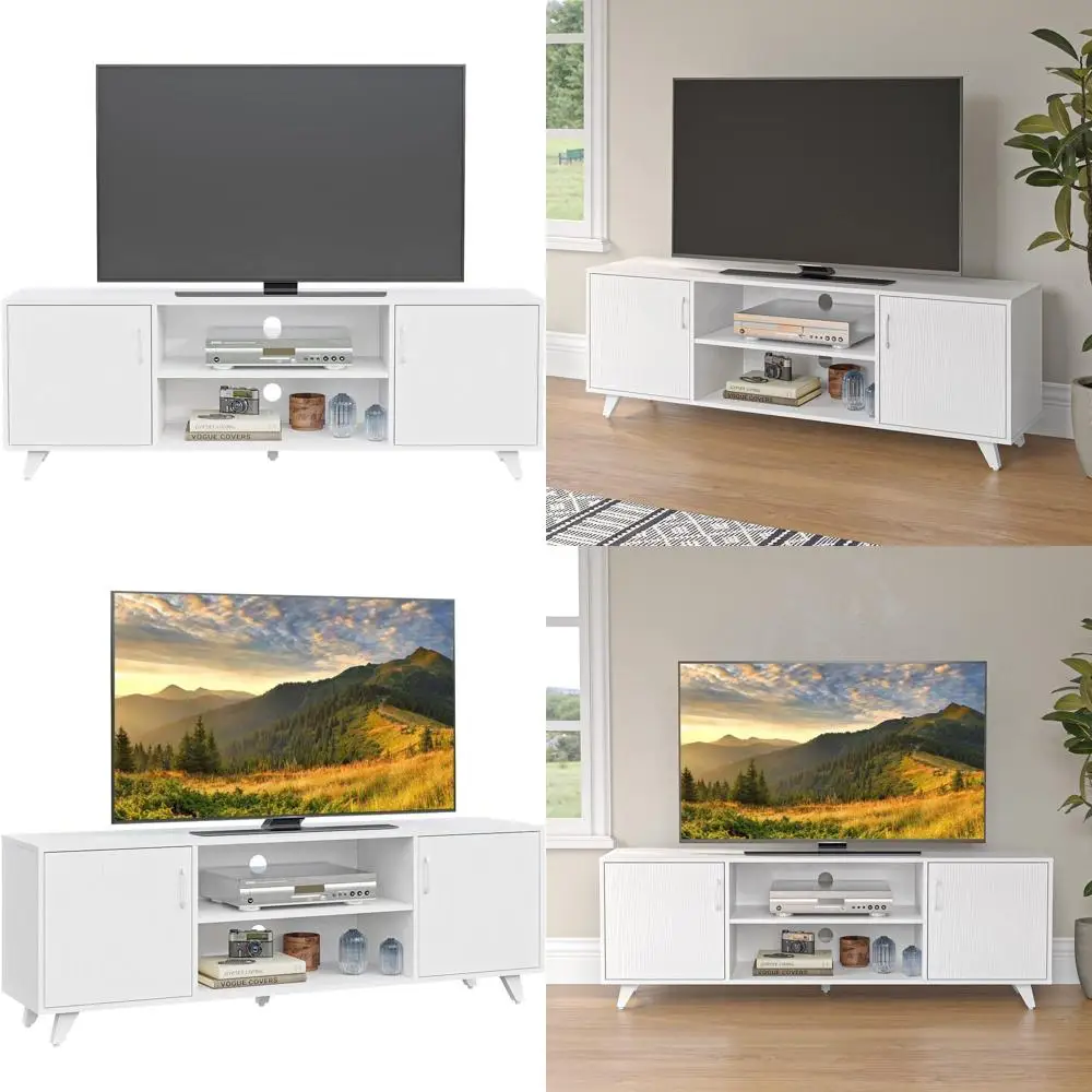 White 53.5 TV Stand with 2 Doors & 2 Cubby Storages for 65 TVs, Ideal for Living Room or Bedroom $104.88