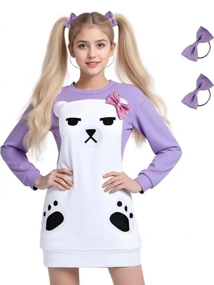 Demon Hunter of KPop Cosplay Purple Sleepdress Headwear White Bear Pajama Women Sleepwear Halloween Carnival Party Outfits $16.34