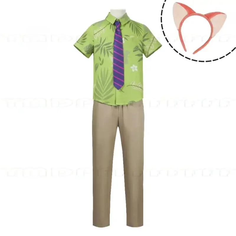Animal Party Fox Fox Nick Wilde Cosplay Set Shirt and Tie Men's Halloween Green Leaf Print Cosplay Beach Dress Up $26.24
