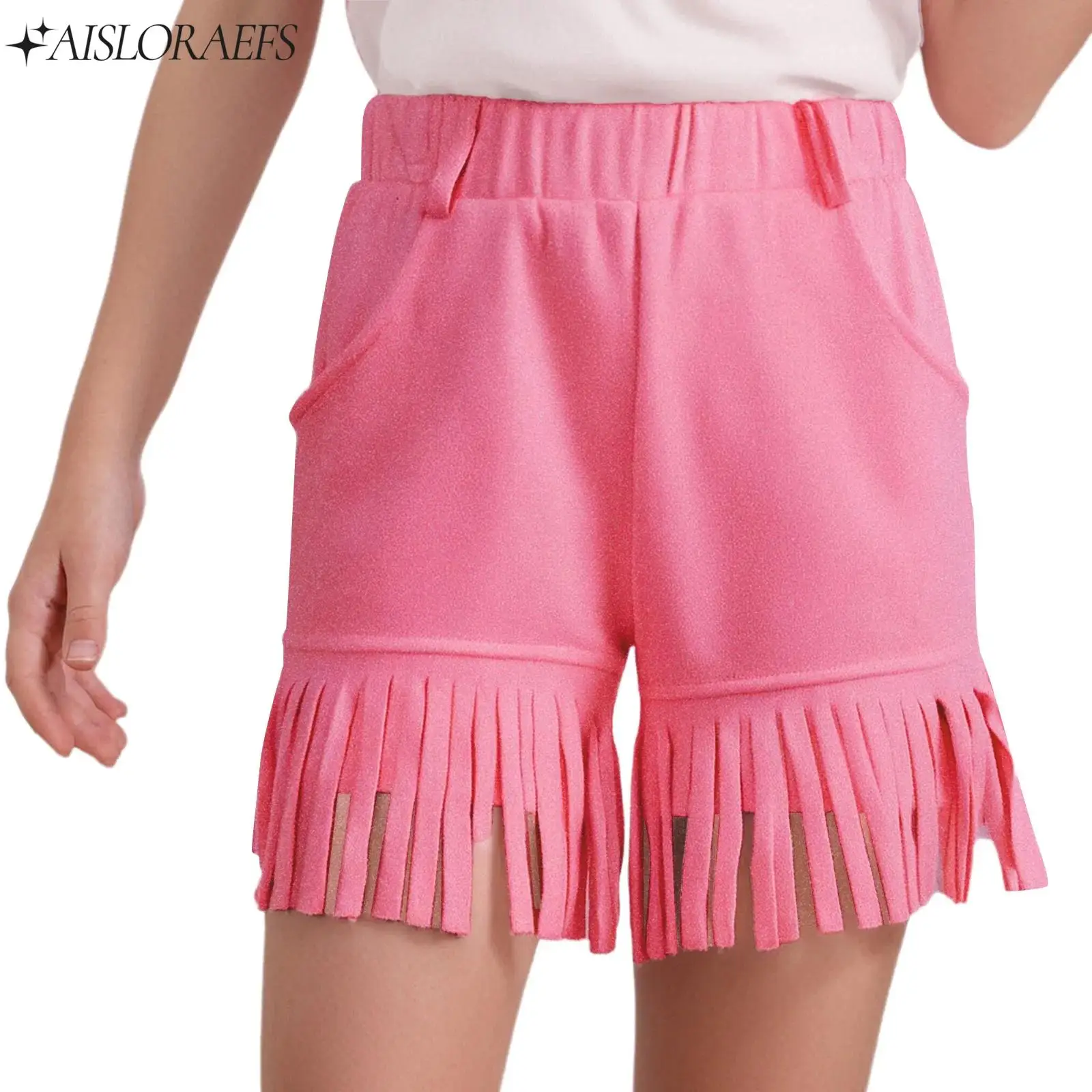 Girls Boys Cowgirl Cowboy Role Play Halloween Costume Stretchy Faux Suede Fringe Shorts with Pockets for Fancy Dress Party $7.56