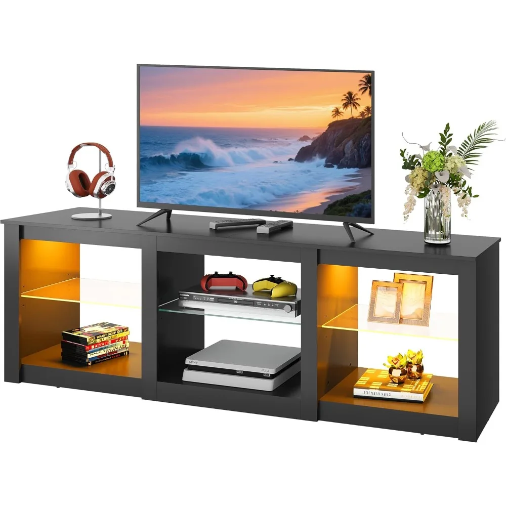 Modern 65 Inch LED TV Stand, Adjustable Glass Shelves Entertainment Center with Custom LED Lighting, Sturdy Design $107.89
