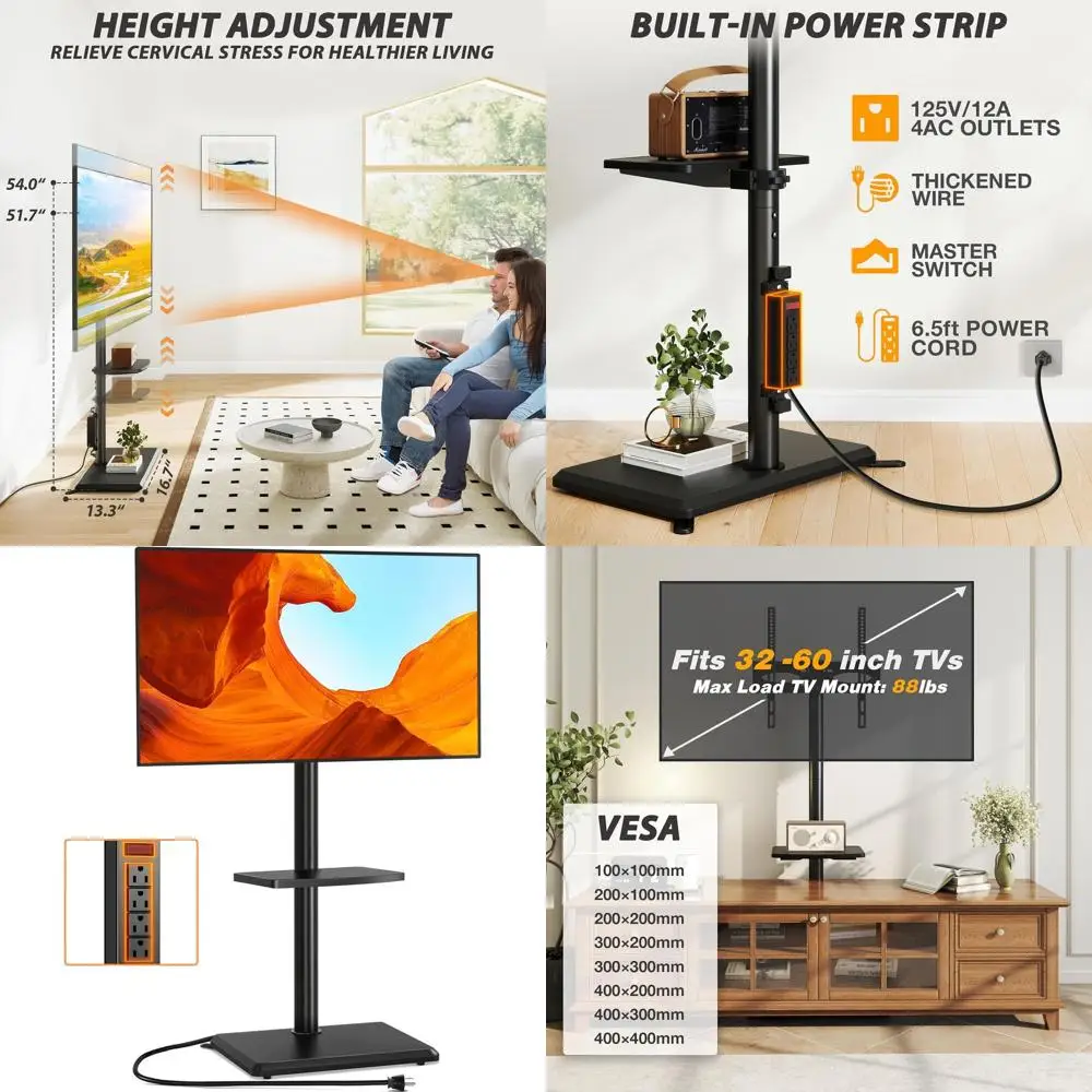 Adjustable Swivel TV Stand with Power Outlet for 32-60 Inch TVs, Supports up to 88 lbs, Height Adjustable Base for Home or Offic $66.80